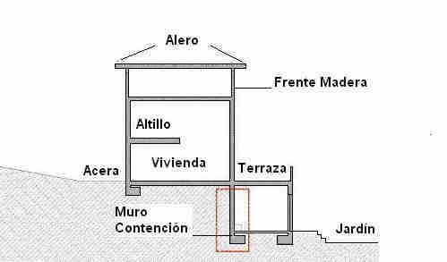 Como puede verse, la pared posterior de dicha bodega, sirve de cimiento de la vivienda, así como de muro de contención, de las tierras del jardín posterior. Debe destacarse que todo el perímetro de la vivienda, a nivel de la Planta Baja, o sea por la parte superior a dicha bodega, esta rodeado de una acera de pavimento de piedra para alejar al máximo posible las aguas de lluvia de las paredes de cerramiento.