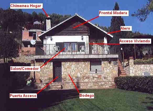 En este punto cabe distinguir dos aspectos diferenciables, ya que existe un paramento de cerramiento de madera tipo troncos, -(a semejanza de cómo se construyen las cabañas de alta montaña)-, pero existe además una estructura de soporte de encofrado de la cubierta, realizada a base de viguetas de madera y una solera de madera machihembrada que, en el alero que rodea la vivienda, queda a la intemperie y precisa mantenimiento.