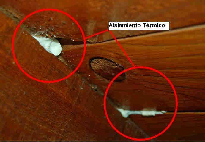 Tal y como puede verse en la fotografía adjunta, la cubierta fue aislada en algún momento con Porexpan que puede verse perfectamente en las juntas de la madera del interior de la vivienda, al margen de figurar en una de las facturas adjuntas a los Autos.