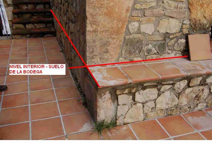Debe destacarse que el propietario manifestó que en la estancia, justo a la entrada de dicha bodega, a veces encuentra un charco de agua que, como puede verse en la foto inferior, ha humedecido totalmente el trozo de madera que se almacena en dicha estancia, marcando una clara mancha horizontal en la pared. El día de la visita, estaba seco.