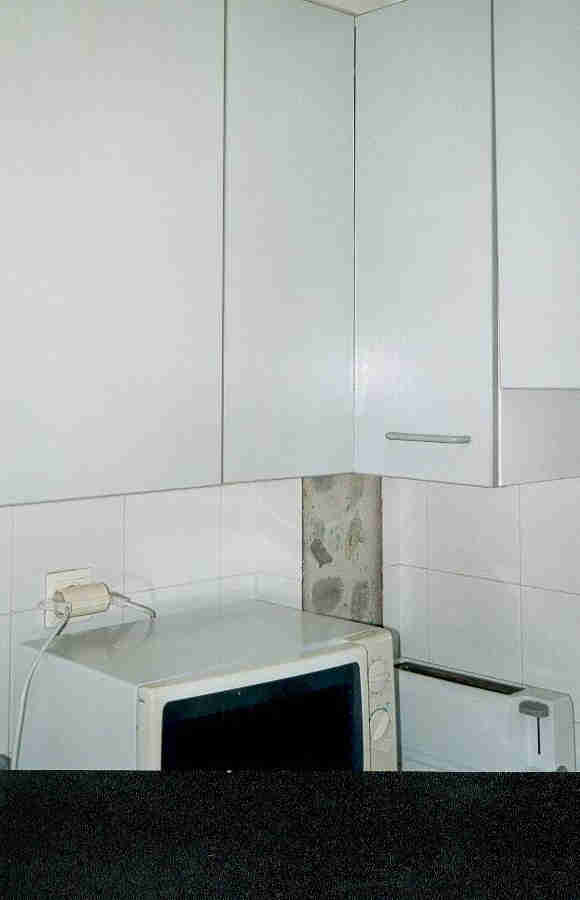 El diseño de la cocina y horno, no corresponde a ningún tipo de compacto existente en el mercado. Simplemente, en la encimera de la cocina (de aglomerado de fórmica postformado) se encastó una placa eléctrica de dos fuegos y debajo de la misma se situó un pequeño horno convencional.